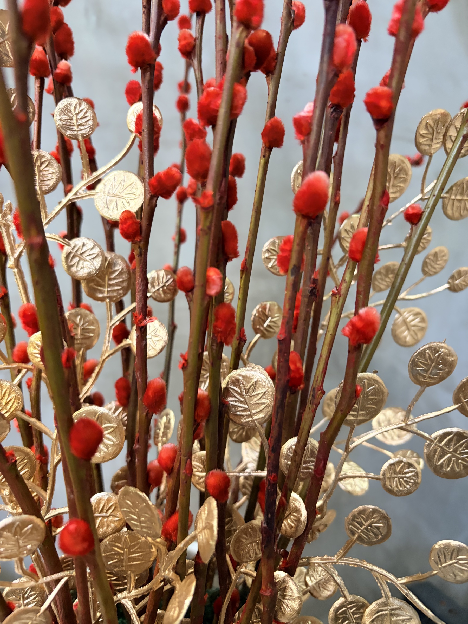 The Pussy Willow Fortune Set is a refined expression of prosperity, renewal, and auspicious beginnings. Featuring gracefully rising pussy willow branches—deeply rooted in Chinese tradition as a symbol of wealth, growth, and positive energy for the year ahead—this arrangement embodies elegance and intention. Accented with vibrant orange tones and golden details, the design reflects upward momentum, success, and enduring good fortune.