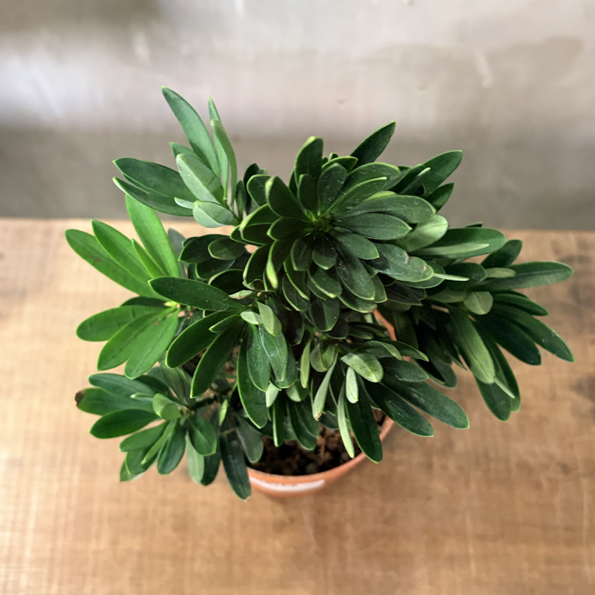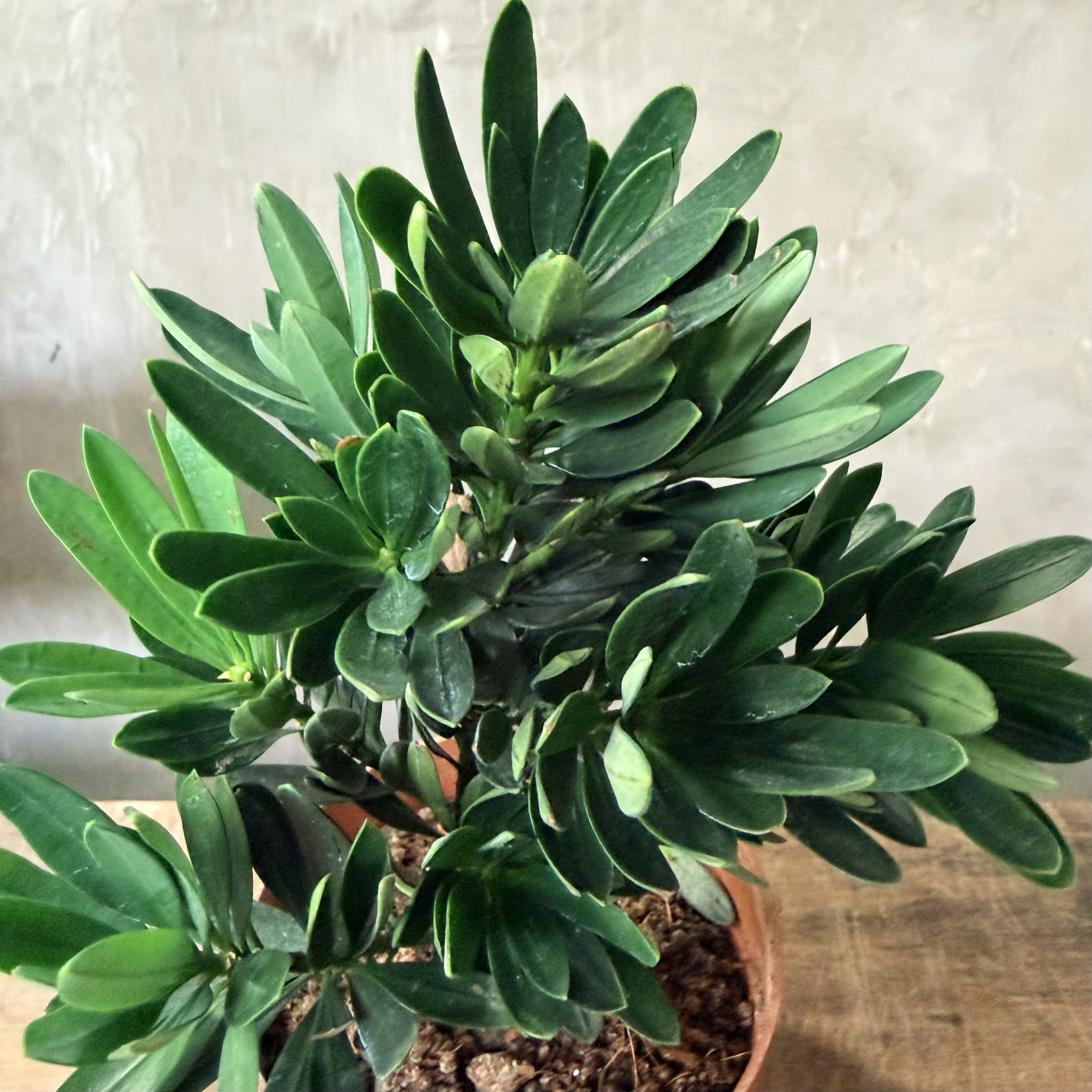 Podocarpus macrophyllus, commonly known as Buddhist Pine or Yew Plum Pine, is an elegant evergreen plant valued for its slender, dark-green needle-like leaves and upright growth habit. Its neat and refined appearance makes it a popular choice for bonsai, hedges, topiary, and ornamental pots. Hardy and adaptable, it adds a calm, timeless beauty to both indoor and outdoor spaces.