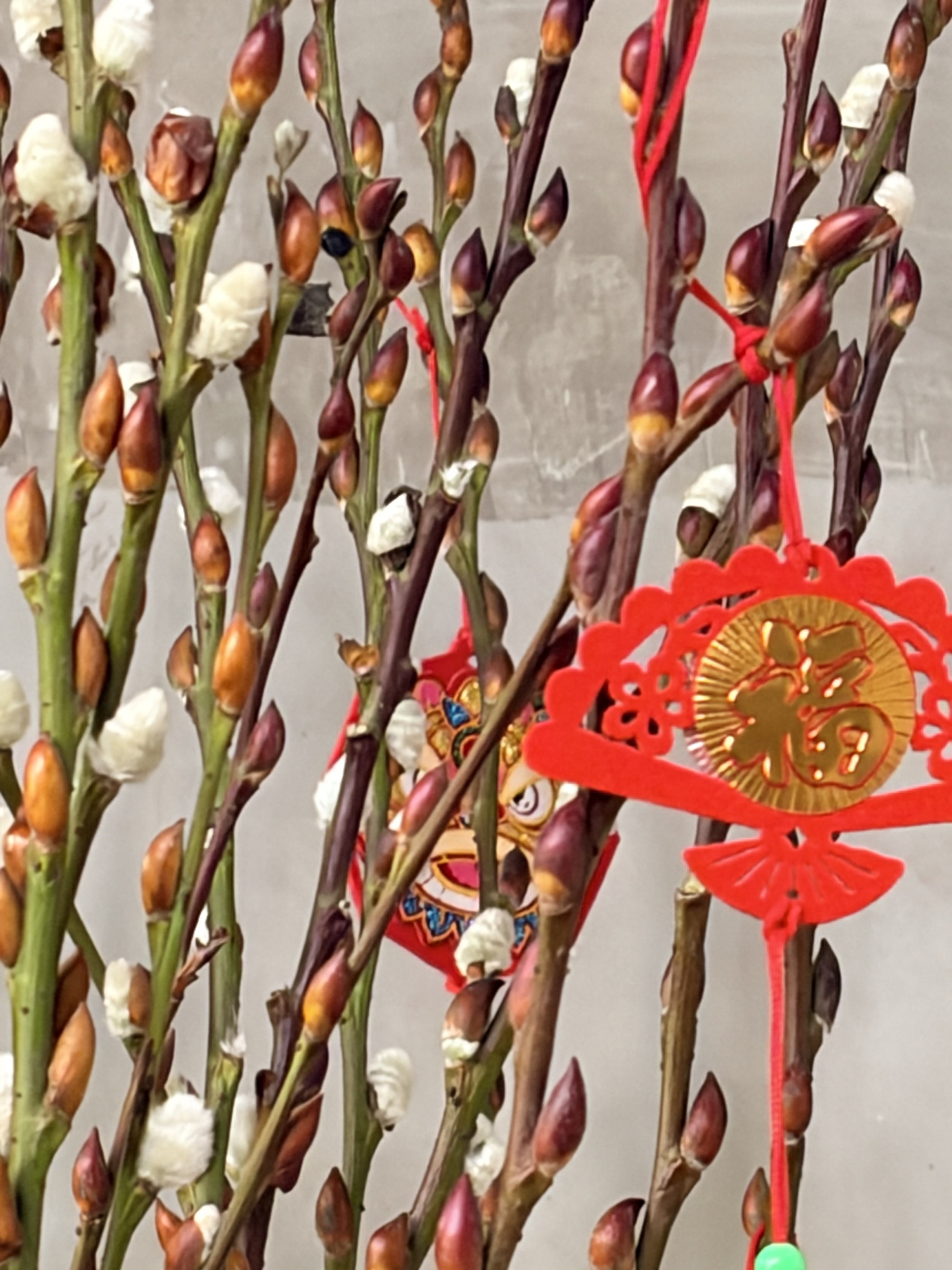 象征 生生不息的好运、更新与长久富足。选用可持续生长的活体银柳,寓意新的一年运势延续、财气常在。在传统文化中,银柳被视为 招财纳福、旺事业、迎新生 的吉祥植物,向上生长的枝条代表机遇不断、步步高升。搭配喜庆的橙色点缀与低调的金色细节,更添富贵与祝福之意。