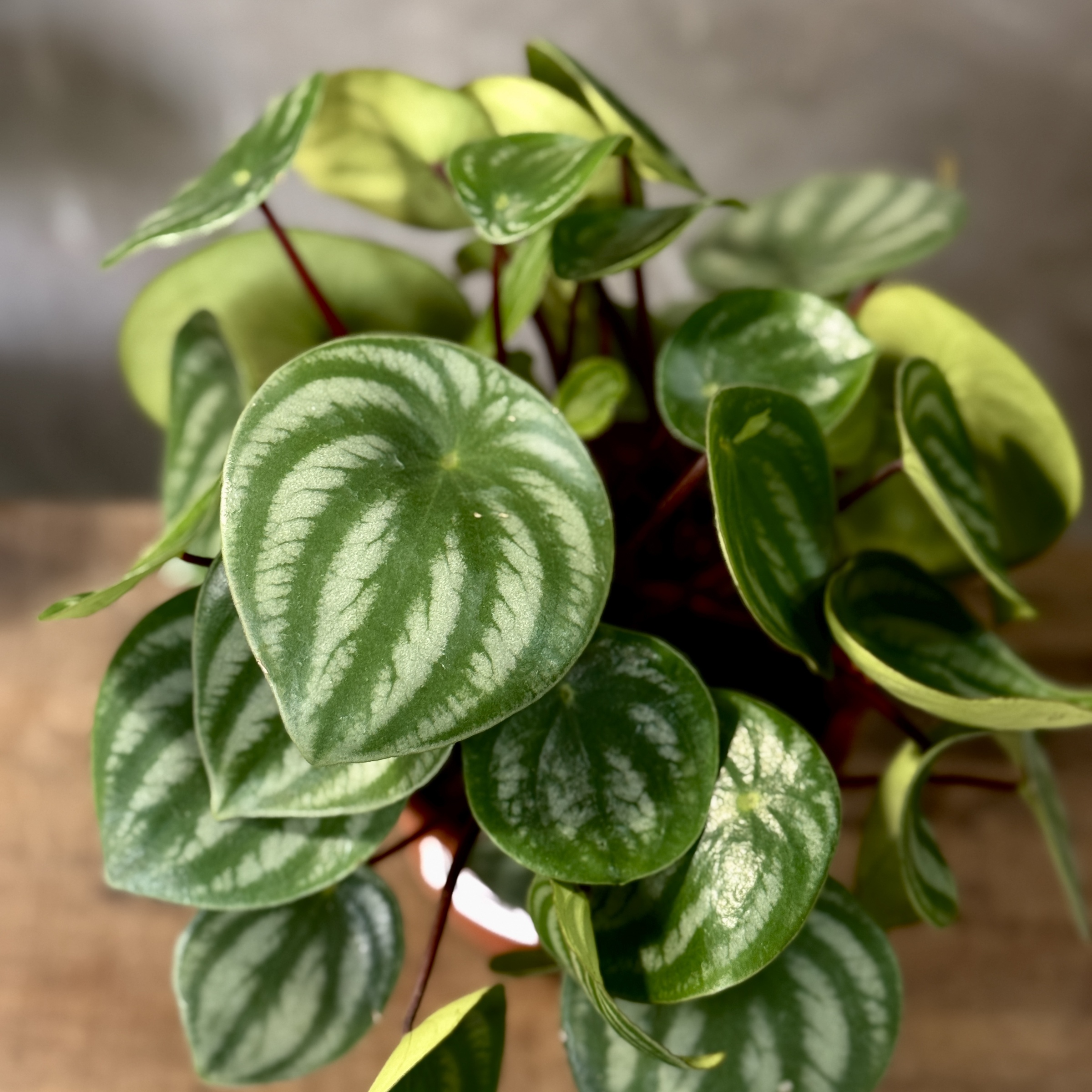 Light: Watermelon peperomia thrives in bright, indirect light. Avoid direct sunlight, as it can scorch the leaves.