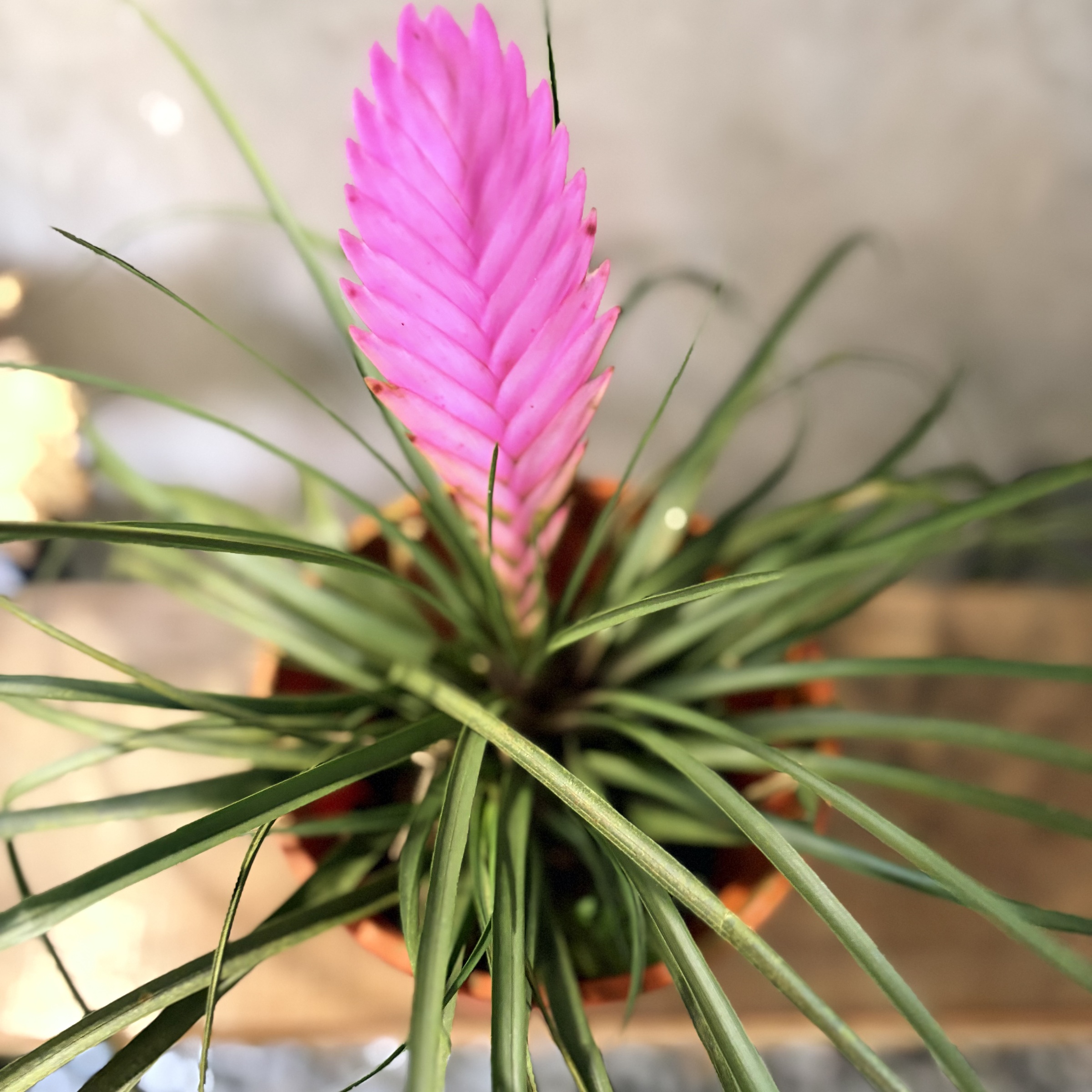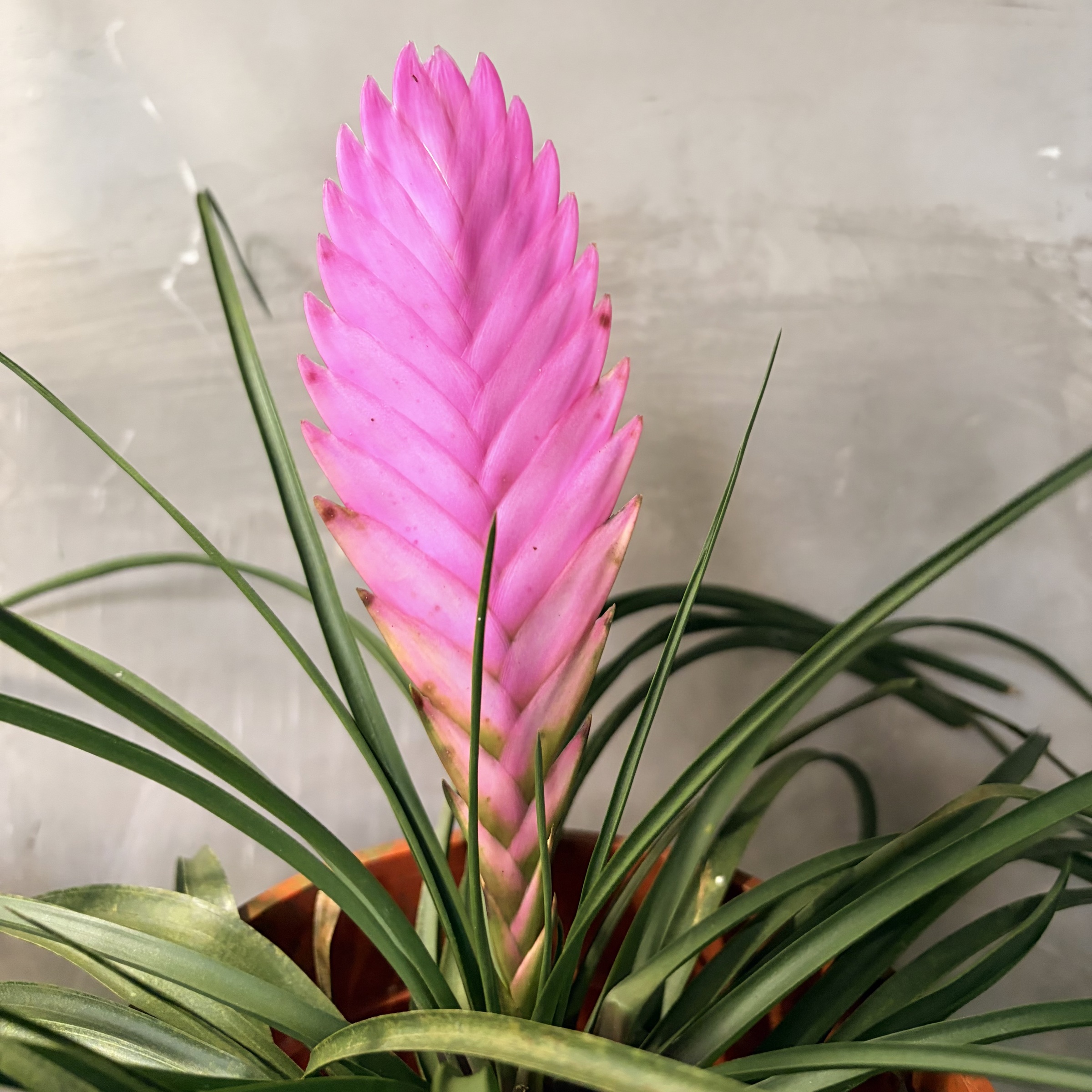 Tillandsia cyanea, commonly known as the Pink Quill Plant, is a beautiful bromeliad loved for its flat, bright pink bract shaped like a quill and its soft, arching green leaves. When in bloom, small violet flowers emerge from the quill, adding an elegant touch. Compact and low-maintenance, it’s perfect for desks, shelves, and indoor plant corners.