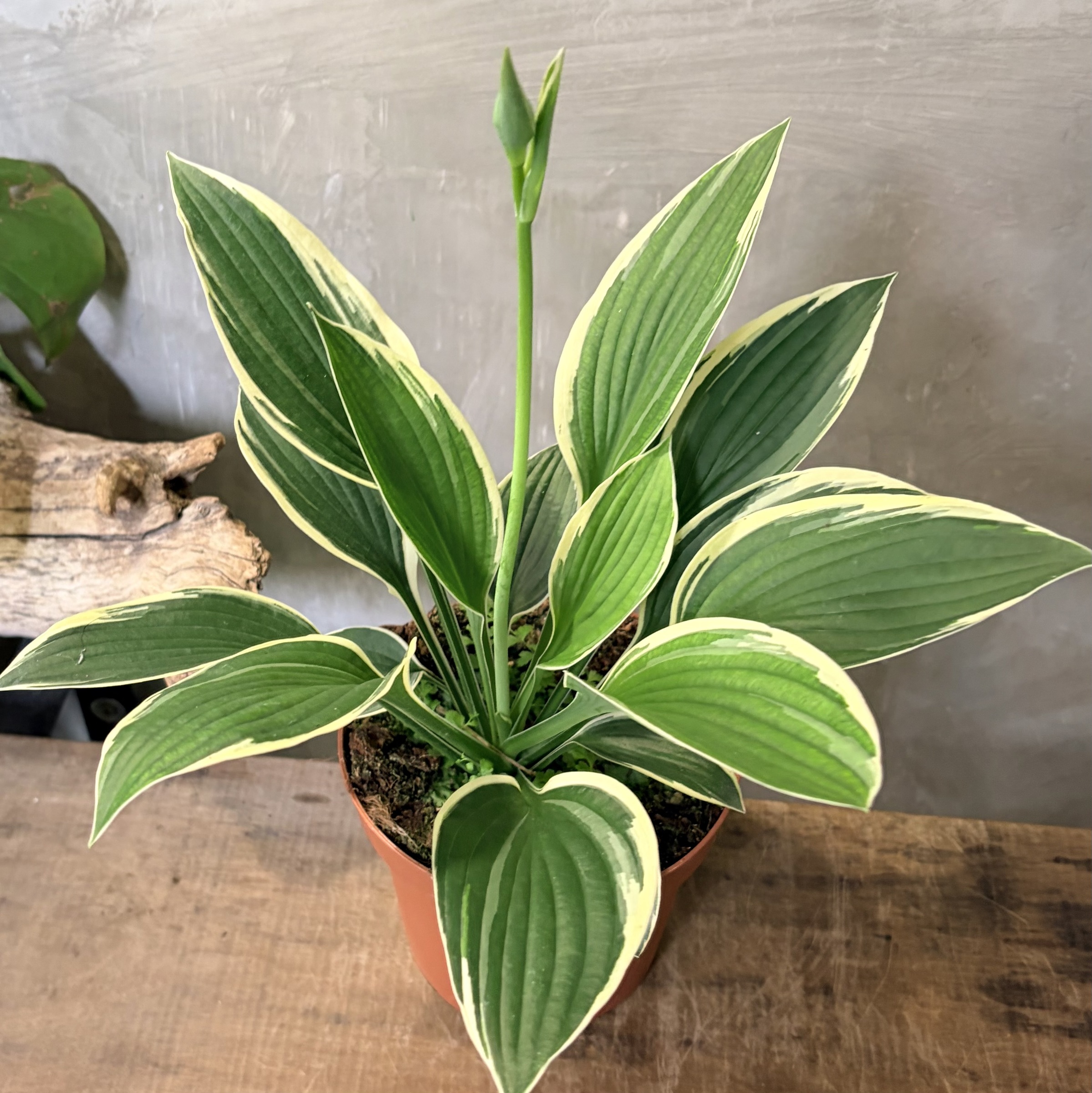 Hosta, often called Plantain Lily, is a shade-loving perennial admired for its lush foliage in shades of green, blue, or variegated patterns. Its broad, textured leaves create a striking display, while its tall stalks produce delicate, bell-shaped flowers in summer. Hostas are versatile, adding elegance to gardens, patios, and shaded indoor corners.